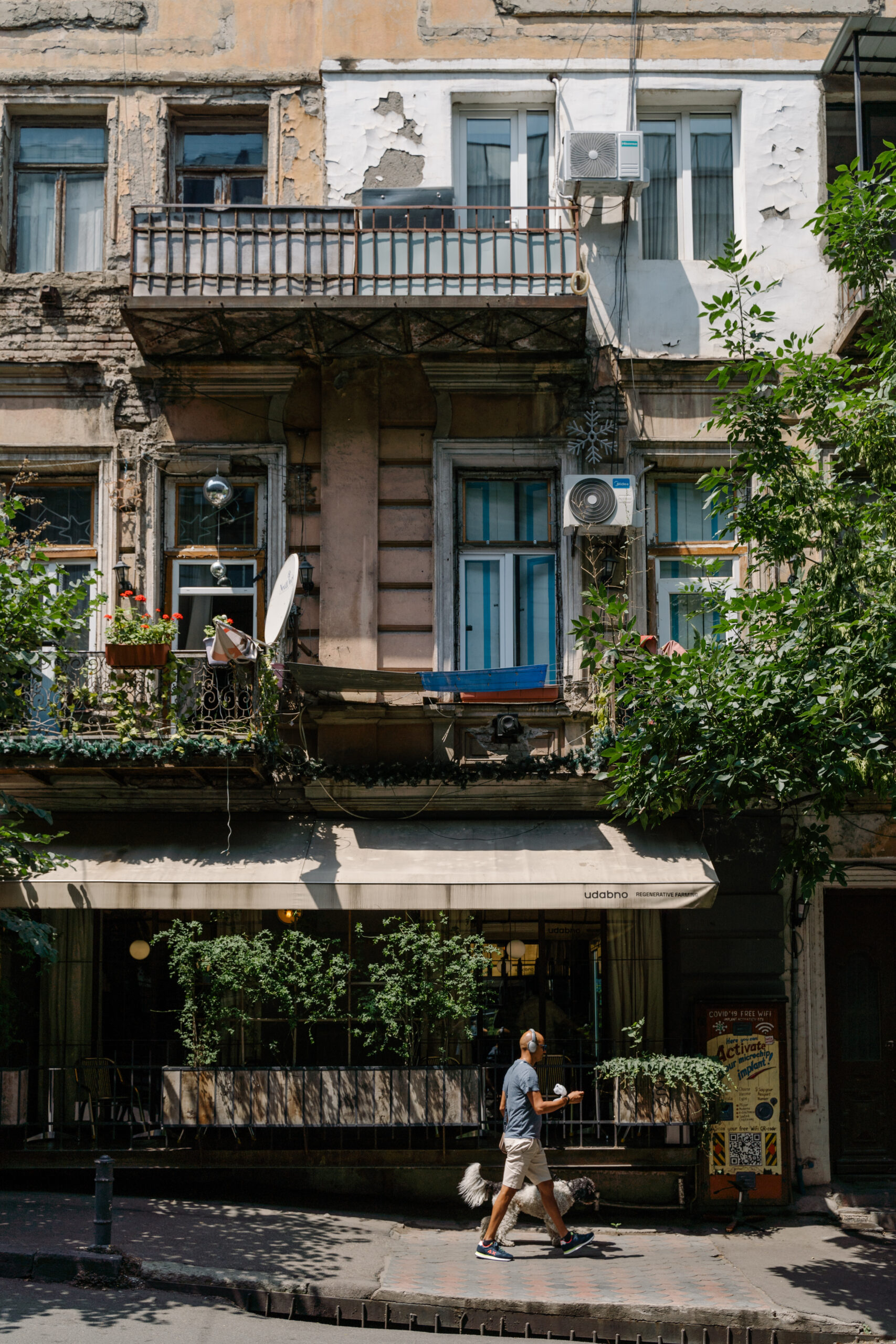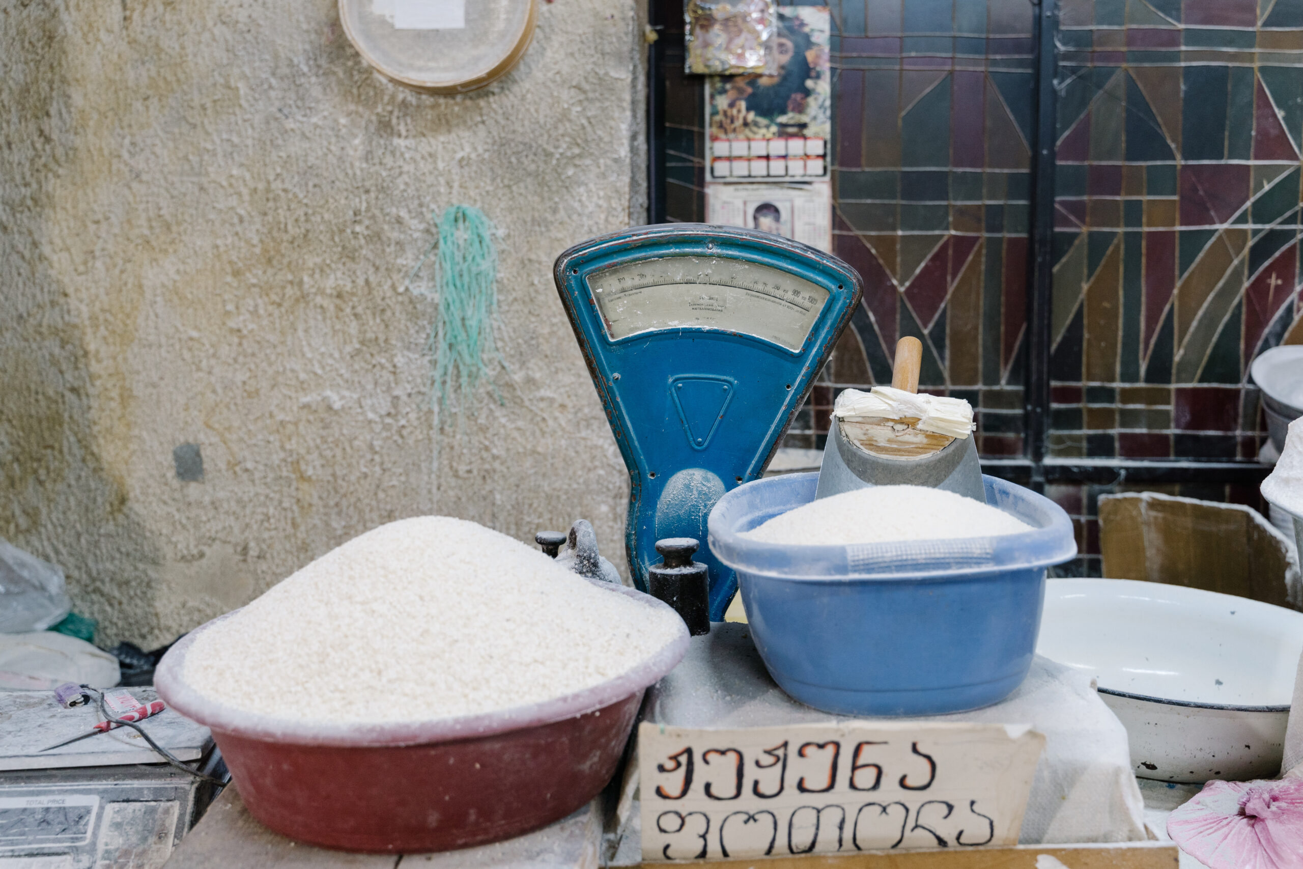 Büschel von Koriander und Estragon, eimerweise eingelegte Rüben, grüne Tomaten und Knoblauch, Regalbretter voll Glasflaschen mit grünem und rotem Tkemali, der georgischen Kirschpflaumensoße. „Als ich das erste Mal hier war, war es unmöglich, Blattsalat zu bekommen“, erzählt Paul Rimple, während er uns über den größten Markt der georgischen Hauptstadt führt. Vor 20 Jahren kam der Journalist aus Kalifornien nach Tiflis – und blieb. Seitdem zeigt er Besuchern die lebendige Foodszene. „Am Dezerter Bazaar kann man sehen, wie sich die Stadt verändert hat. Mittlerweile gibt es hier auch Avocados und Brokkoli.“ Tiflis – eine Stadt im Wandel, im Zentrum eines der ältesten Wein und Käseländer der Welt. Hier treffen Ost und West, Tradition und Moderne aufeinander: An den Häusern ranken Weinblätter, selbst beim Friseur bekommt man als Erstes ein Glas Wein angeboten. In den Gassen gibt es noch einzelne Käseläden und Metzgereien, aus Kellerfenstern wird Khachapuri verkauft, mit Käse gefülltes Fladenbrot und das beliebteste Nationalgericht Georgiens. Ehemalige Garagen haben sich in gemütliche Cafés verwandelt, und die oft schiefen Balkone der alten Gemäuer sind mit Europaflaggen geschmückt. Über allem wacht „Mutter Georgien“. Die Statue überblickt die ganze Stadt: in der einen Hand ein Schwert, in der anderen ein Weinglas – zur Abwehr von Feinden, aber auch als Zeichen der Gastfreundschaft.
