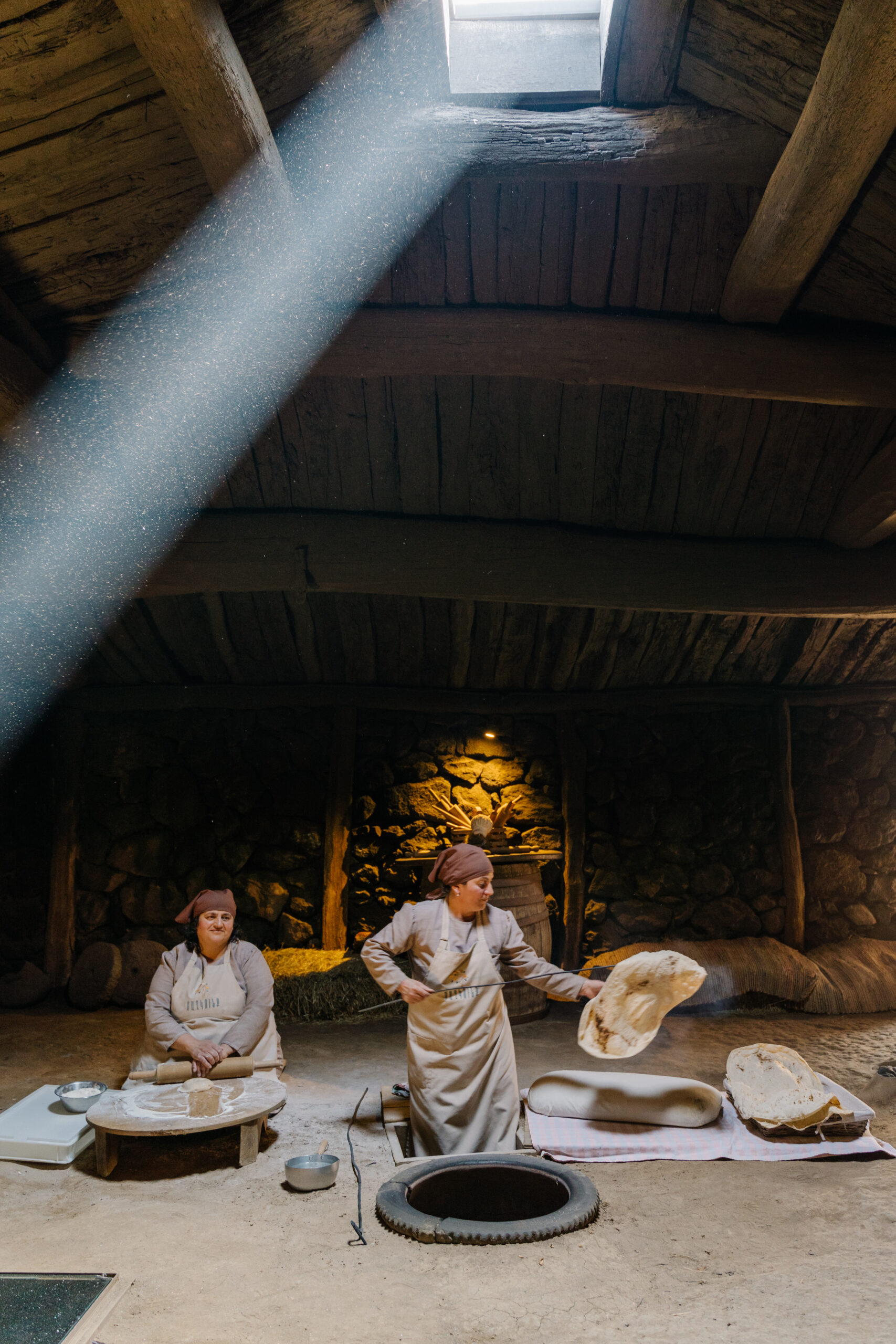 Ein dunkler Raum, nur von einem einzigen Oberlicht erhellt, umgeben von massiven Steinmauern aus dem 11. Jahrhundert – hier befindet sich das Herzstück des derzeit angesagtesten Restaurants Armeniens, des „Tsaghkunk Restaurant & Glkhatun“ im gleichnamigen 1000-Seelen Dorf in den Bergen im Norden des Landes: Zwei Bäckerinnen, Gohar Gareginyan und Anna Yesayan, bereiten im Minutentakt frisch gebackenes Lavash zu, das meterlange Fladenbrot, dessen Herstellung von der UNESCO zum immateriellen Kulturerbe erklärt wurde. Der Teig wird ausgerollt und kunstvoll durch die Luft gewirbelt, dann auf eine Art Kissen gespannt. Vor dem Backen segnet eine der beiden das Brot. Dann klatscht sie den Teig gegen die Wand des Ofens im Boden. Nach wenigen Sekunden zieht sie das heiße Fladenbrot mit einem Haken wieder heraus und legt es auf einen Stapel. Das „Tsaghkunk“ besinnt sich zurück auf Traditionen und interpretiert die armenische Küche neu – das zieht Gourmets aus der ganzen Welt an.